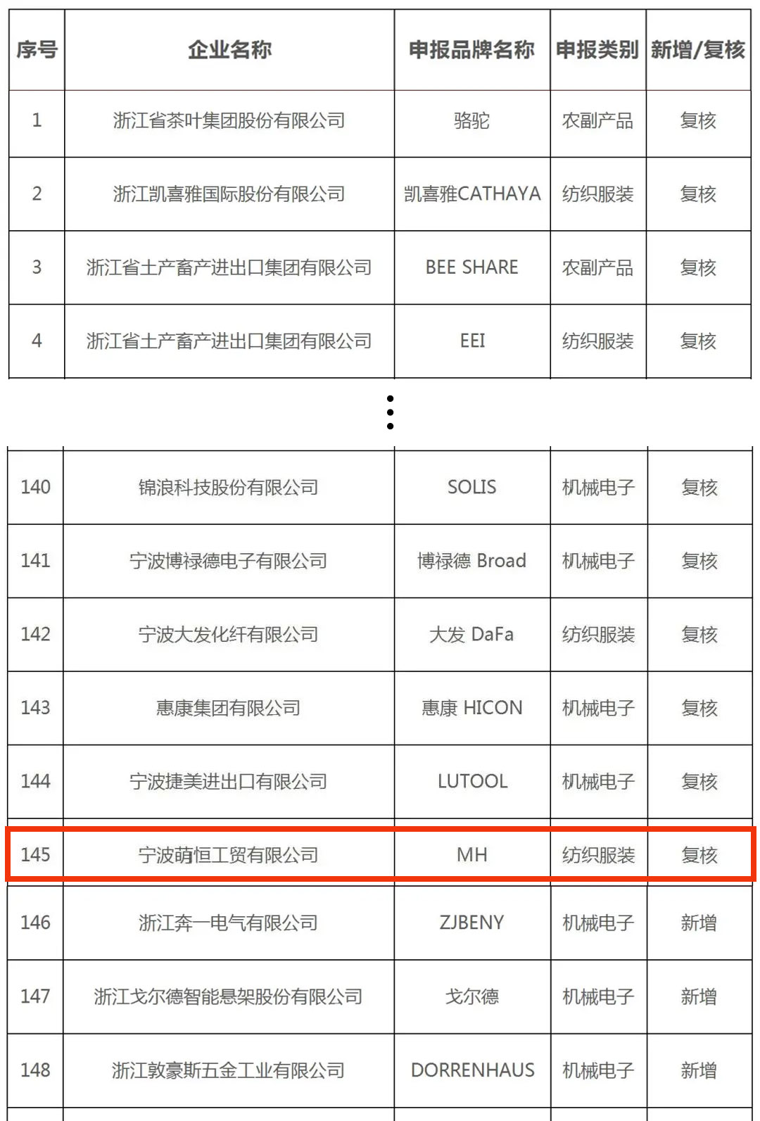 2020年度“浙江出口名牌”出爐,寧波萌恒榜上有名