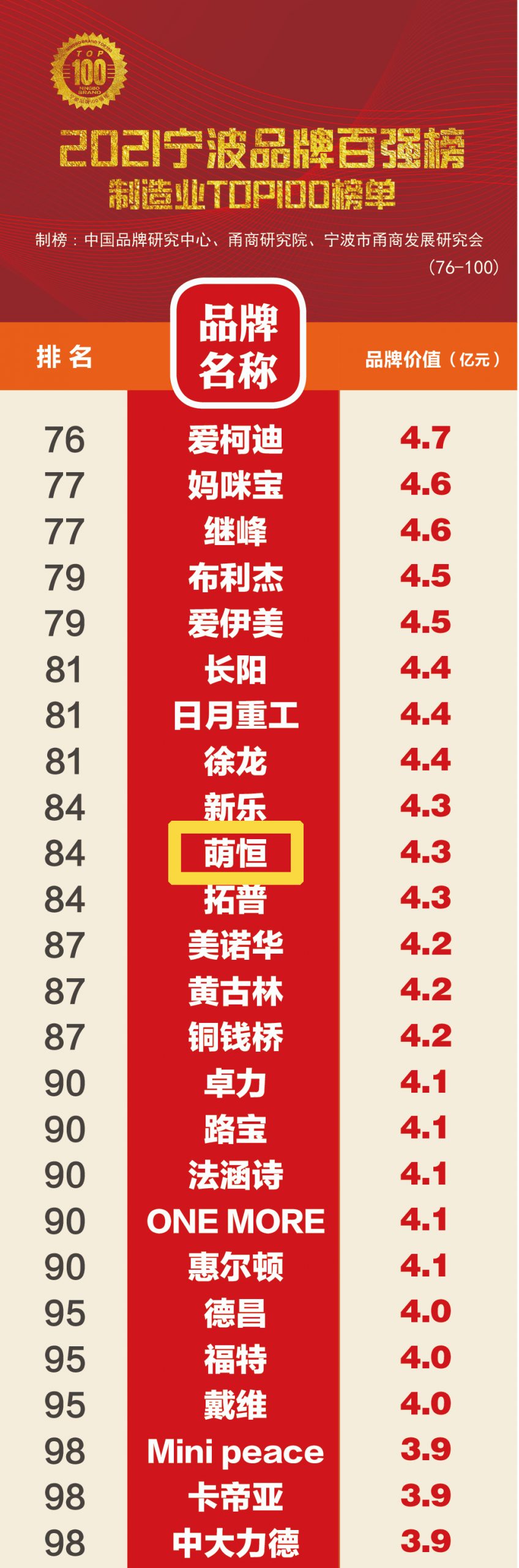 “寧波品牌奧斯卡”正式出爐,萌恒榮登2021寧波品牌百強榜