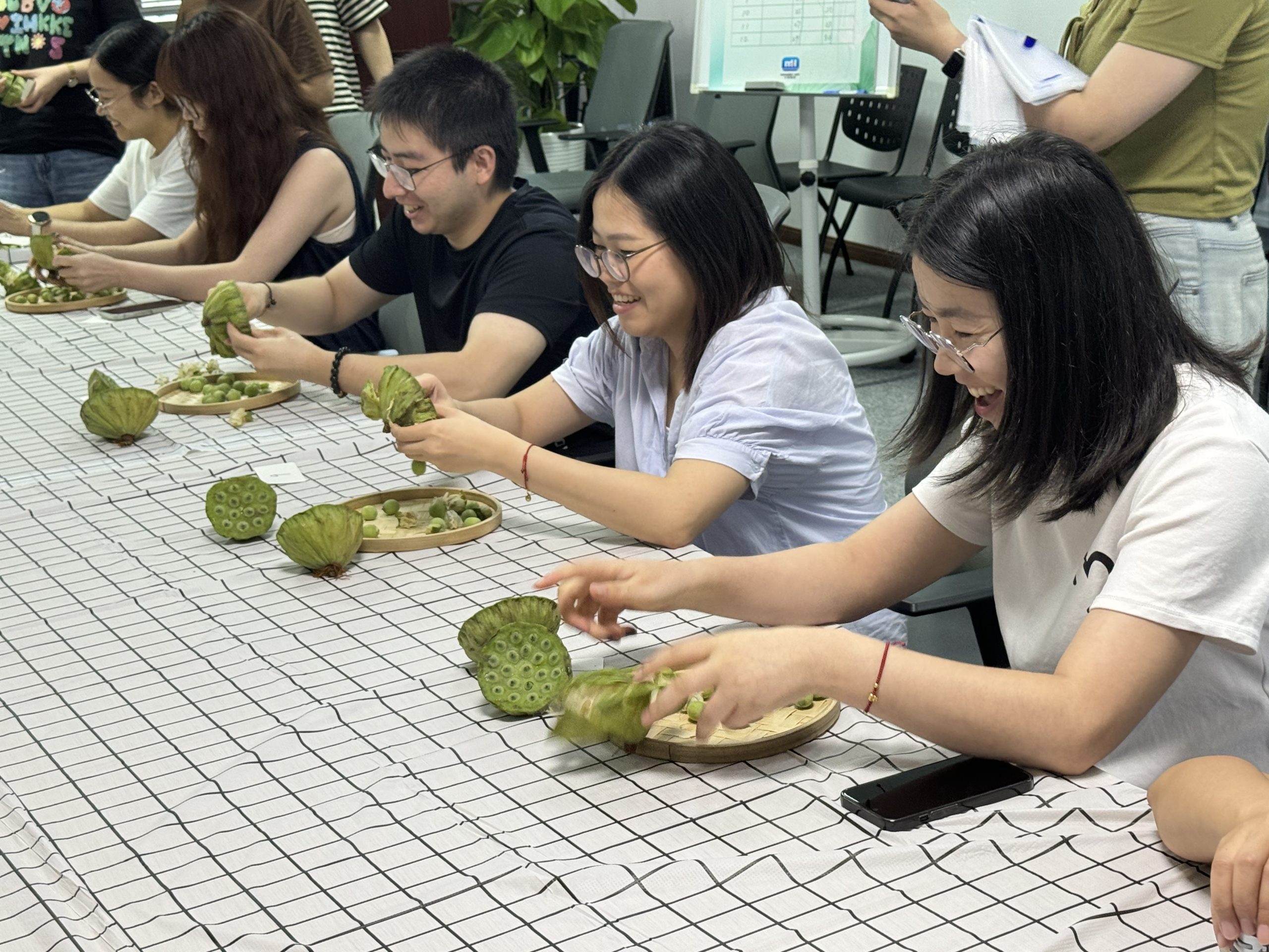 最近氣溫節節高升,熱浪蠢蠢欲動,為了給國貿小伙伴帶來夏日的一抹清涼,提振精氣神,7月19日,國貿事業部在六樓會議室精心布置了夏日清爽制造局,吸引了120余名小伙伴前來參加。 中午時分,小伙伴們興致勃勃地來到活動場地,面對一溜兒的冰爽飲品、可口小料,手指大動,紛紛發揮奇思妙想,制作萌恒限定的特調冰品,創意無限。一眨眼的功夫,橙香茉莉、荔枝氣泡水、維C美式、冰搖葡萄烏龍、茉香奶綠就做好了……大家的手上捧著冰品,臉上洋溢著笑容,互相分享各自的特調,現場一片和樂的氛圍。 另一側,套圈場地也人頭攢動,印著“客戶至上、團隊合作、開放創新、激情進取、誠信敬業”的萌恒價值觀小立牌就擺放在大家的眼前,每個人有五次套圈的機會,套中兩個即可獲得一張刮刮卡。套圈小游戲讓大家獲得西瓜、蒲扇、棒冰等消暑禮品的同時,也讓萌恒價值觀進一步深入人心,引來小伙伴們頻頻點贊! 如果說冰品DIY和價值觀套圈是暖場和熱身,那剝蓮子大賽則迎來了整場活動的高潮,帶領大家體驗了一番速度與激情。30名選手分為六組進行比賽。選手們各就各位,嚴陣以待,隨著裁判的一聲令下,迅速進入狀態,全力以赴,爭取在一分鐘之內撥出最多的蓮子。 現場氣氛緊張而熱烈,他們的專注和拼勁也感染了身邊為他們加油助威的觀眾,最終財務部汪佳紅、物流單證部王慧慧獲得冠亞軍,財務部朱曉艷和樣品間魯菊并列第三名。比賽雖落幕,但歡快不停歇,大家分享著剝出的蓮子,清甜的口感頗受好評。此次活動不僅讓我們愉悅了身心,也加深了我們的情誼,期待下個夏天,我們再約!