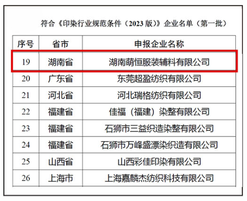 為推動印染行業結構調整和轉型升級,引導行業高端化智能化綠色化發展,根據《印染行業規范公告管理辦法》有關規定,工信部今年組織開展了印染企業規范公告申報和復核工作。經企業自主申報、省級工業和信息化主管部門核實推薦、專家組評審、征求生態環境部意見等程序,9月12日,公示通過了第一批符合《印染行業規范條件(2023版)》企業名單。其中,湖南有三家企業入圍,萌恒榜上有名! 印染是紡織產業鏈的關鍵核心環節,是高附加值服裝面料、家用紡織品以及工業用紡織品等產業的重要技術支撐。目前,公司采用技術先進、綠色低碳的工藝裝備,生產車間引進染化料自動配液輸送系統,實現了印染生產過程的數字化管理,有效提升效率、降低能耗。 展望未來,我們將持續以《印染行業規范條件(2023 版)》的產業政策為基石,對標行業標準,切實發揮好標桿企業帶頭表率作用,改善優化印染產品質量,推進節能減排,加強數字化管理,力爭向技術密集、資源節約、環境友好型發展,為公司降本增效注入強勁動力。